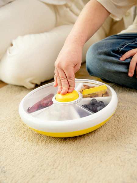 Jedinečný box Snack Spinner od Göbe Kids dělá z svačiny vašeho dítěte mimořádnou atrakci. Váš prcek může přes průhledné víko vidět, co je uvnitř, a pomocí Göbe tlačítka se může sám rozhodnout, co si chce dát jako první. Po každém stisku tlačítka se vnitřní talíř otočí o jednu přihrádku dál, což je super praktické a pomůže dětem naučit se počítat! A co je nejlepší, tento boxík na svačinu si zamilují nejen děti, ale i vy!